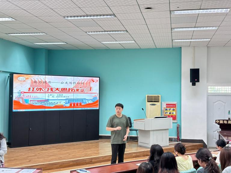 在北一楼报告厅组织召开红外•线大思政课堂之“能力提升”—新闻写作培训讲座,本科生研究生全体学生骨干参加。