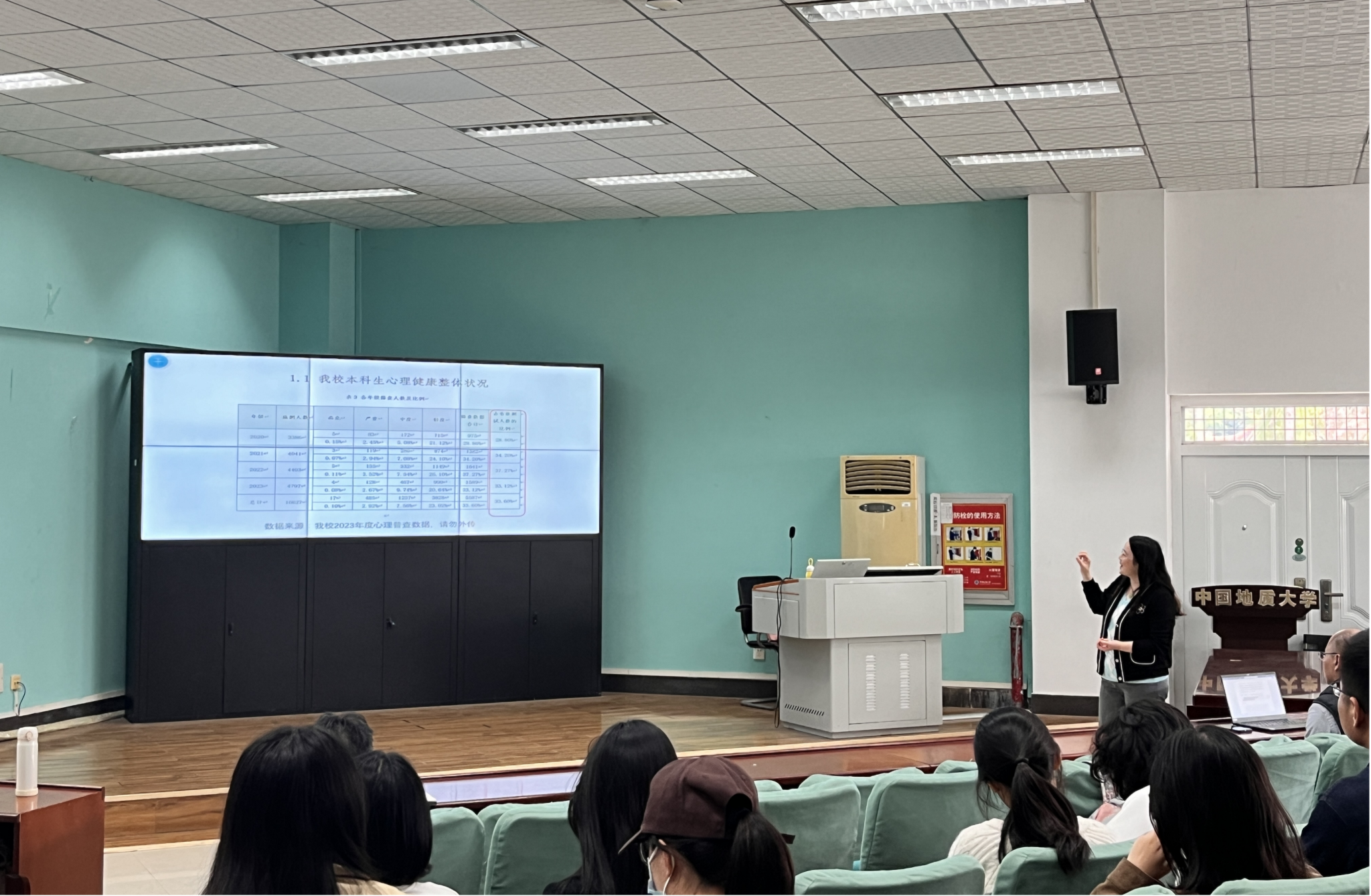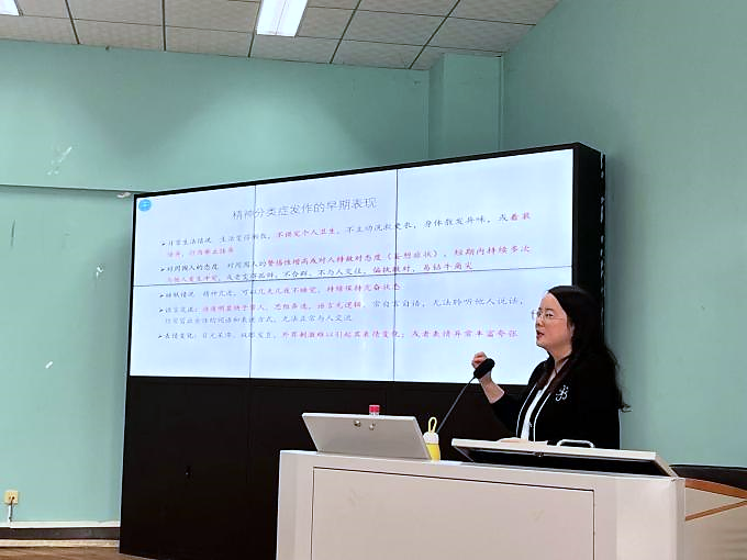 学生中较为普遍的心理健康状况,指出在当前的学业和生活压力下,焦虑、抑郁和人际关系敏感等问题较为常见,部分学生可能还会出现心理危机。她强调了心理健康知识普及的必要性,指出班团骨干在日常生活中应关注同学们的心理状态,以便及时发现异常。