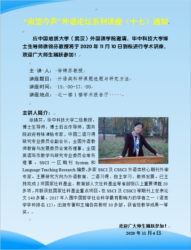 “南望今声”外语论坛系列讲座(十七)通知