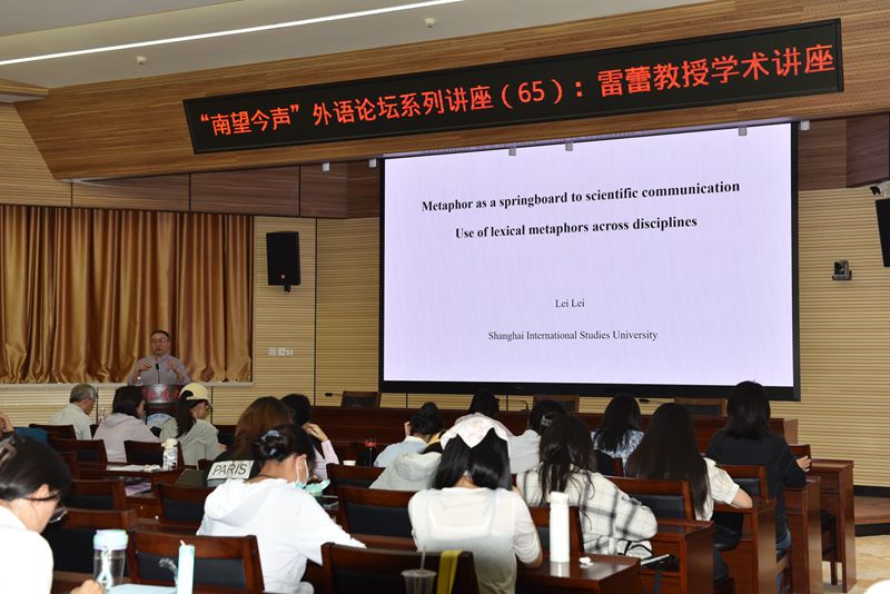 “南望今声”外语论坛系列讲座第65期在东区八角楼报告厅举行。本期讲座特邀上海外国语大学雷蕾教授,为我们带来了一场题为“Metaphor as a Springboard to Scientific Communication: A Large-scale Study of the Use of Lexical Metaphors Across Disciplines”的精彩讲座。此次讲座由磁力猫