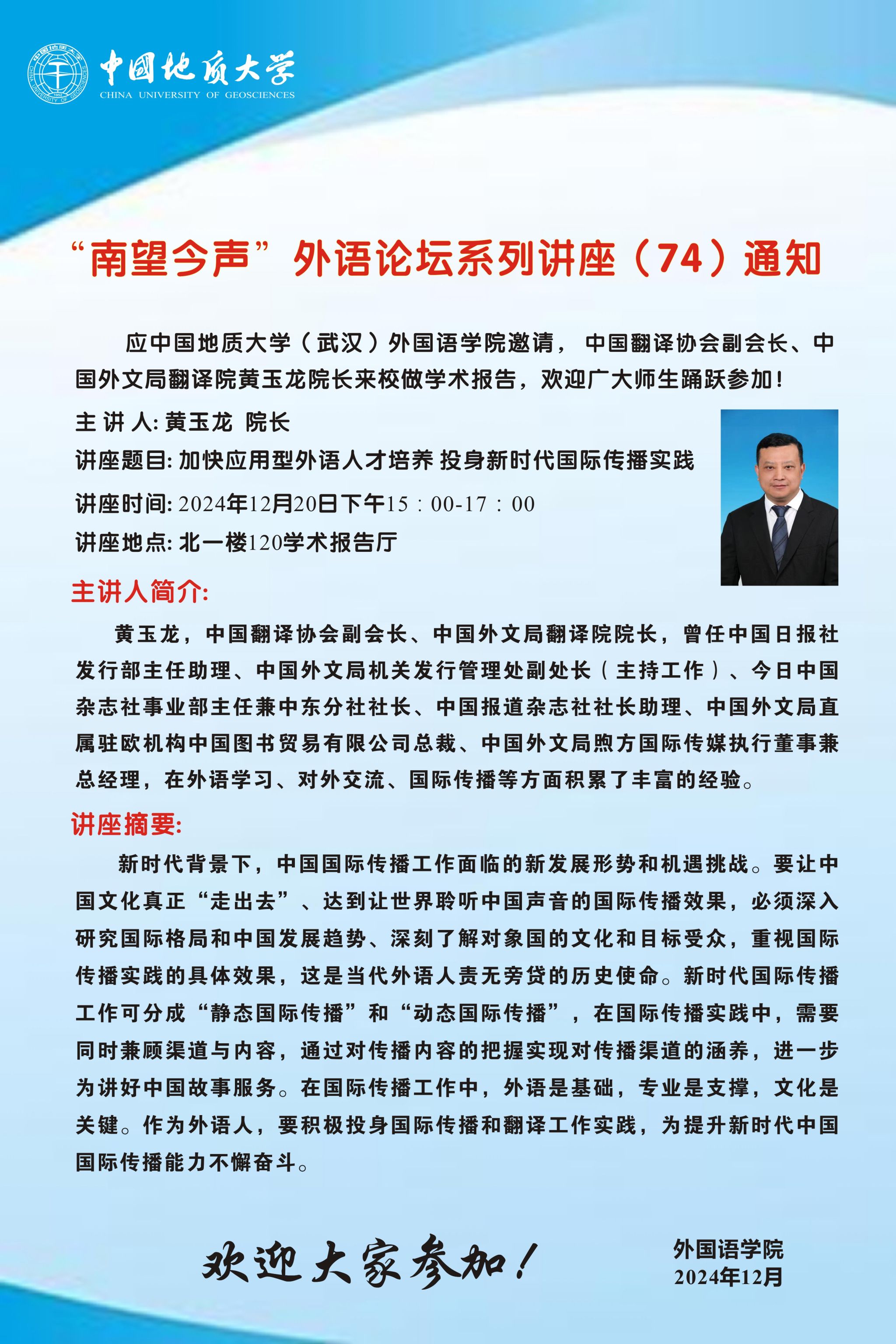 “南望今声”外语论坛系列讲座(74)通知