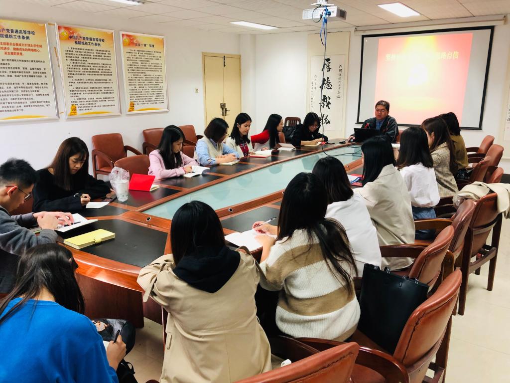 2019年10月29日下午2:30,磁力猫 (武汉)磁力猫 “不忘初心·牢记使命”主题教育系列党课在北一楼339正式开讲,学院党委副书记胡文勤为全院研究生党员讲授了题为“坚持社会主义,增强道路自信”的党课。