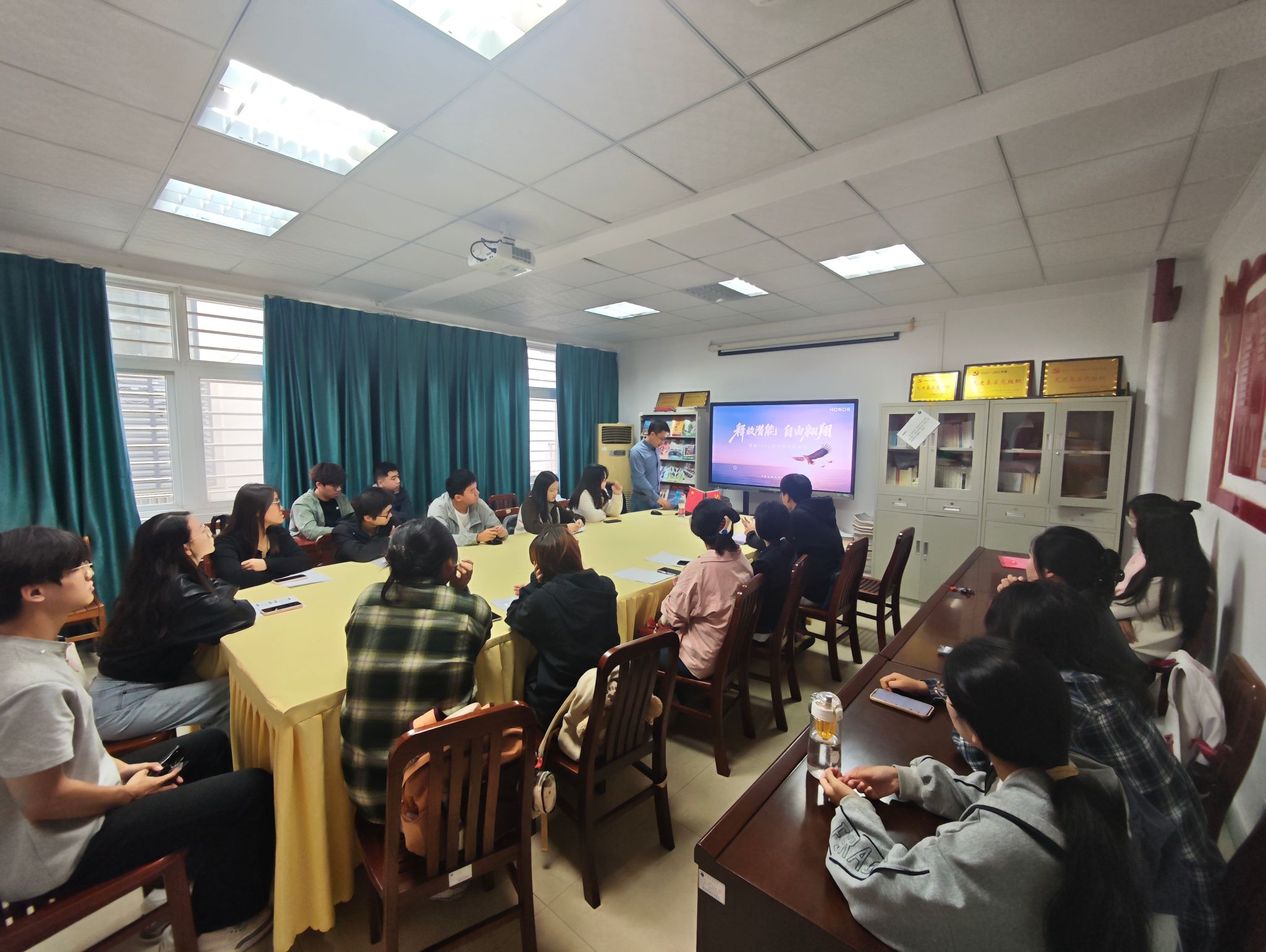 在问答交流环节,同学们踊跃提问,问题涵盖岗位设置、招聘需求等多个方面。孙延镭先生一一作出细致回应,进一步解答了同学们对荣耀的关注点,并鼓励大家认真准备面试。