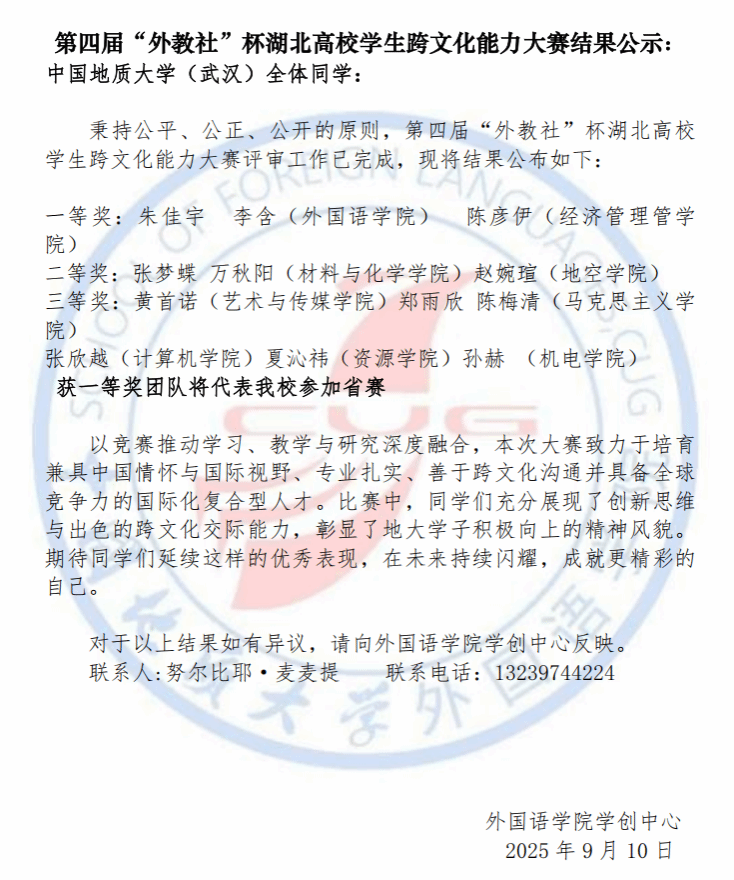 第四届“外教社”杯湖北高校学生跨文化能力大赛结果公示