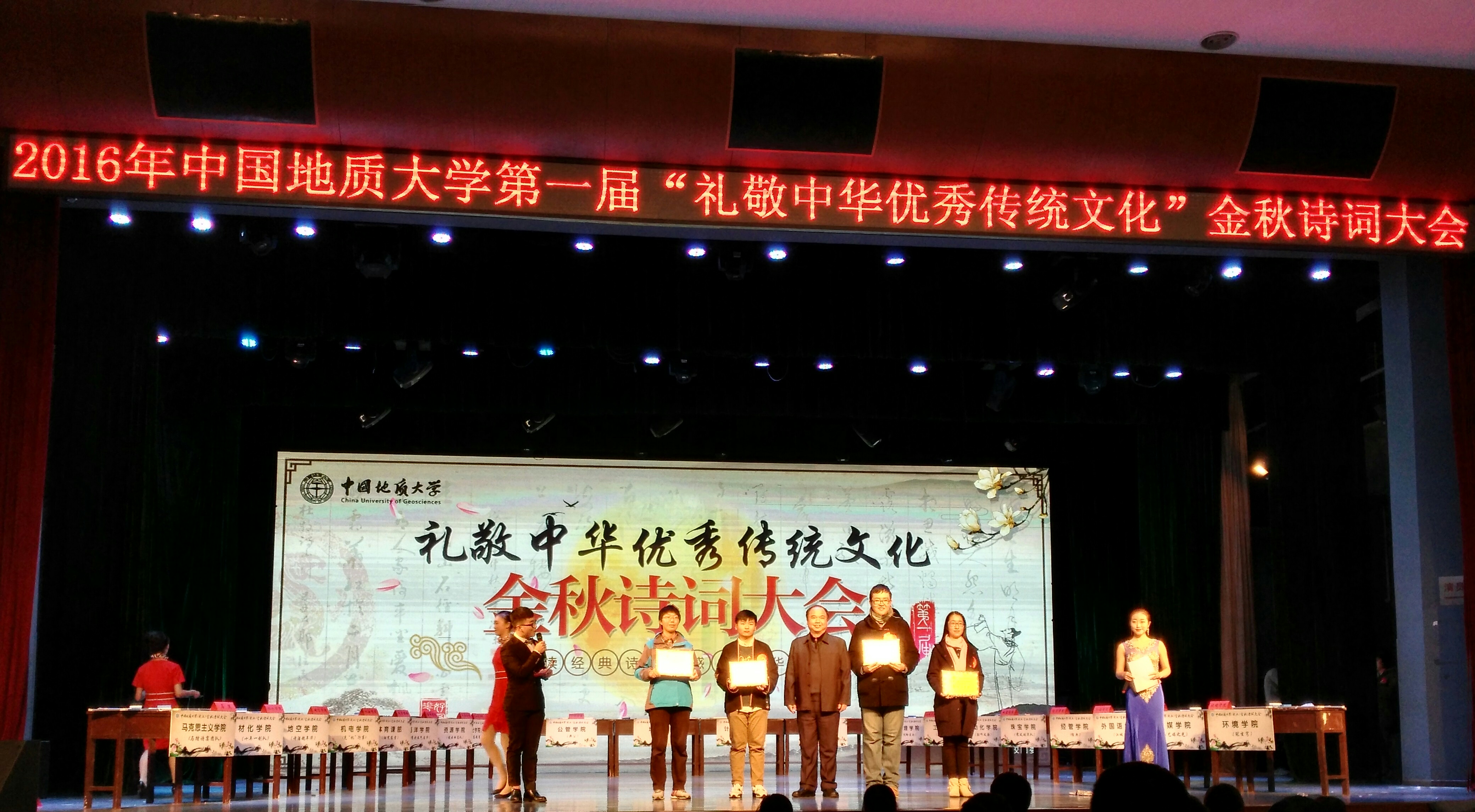 于11月13日举办了“第十三届中西文化节之诗词大赛”殷曼姝、何福麟、胡金佩从比赛中脱颖而出,获得代表学院参加学校比赛的机会。在学校比赛中,三位同学在“天生我材必有用”团队亮相环节喊出了“会挽雕弓如满月,西北往,射天狼。”的口号;“大浪淘沙显本色”环节,每位选手分别答5道题,考察队伍的整体实力,三位同学表现优异,答对了全部的15道题目;“出口成章思敏捷”环节,根据主持人说出的诗句,选手答出上句或下句,何福麟与胡金佩再现学院比赛时的优异表现,才思敏捷、配合默契,答对六题;“心有灵犀一点通”环节,是诗词版本的“你来比划我来猜”,他们在这一环节出现失误,与计算机学院打成平手;最后一个环节“百尺竿头进一步”,选手先压分再进行答题,可能是由于争冠的心情过于急切,在这一环节没有取得理想的成绩。经过主办方的统计,磁力猫