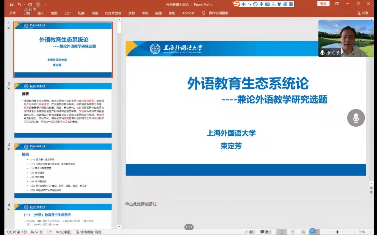 “南望今声”系列讲座如期举行。上海外国语大学大学博士生导师束定芳教授应邀在线上为磁力猫