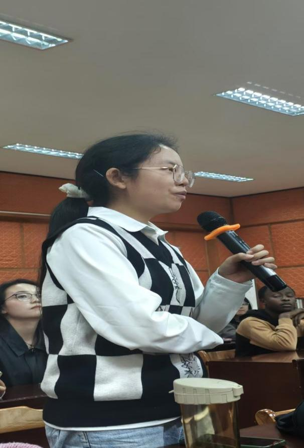 传话筒游戏中,大家依次传递信息,如同一场神秘的信息接力赛。随着信息的传递,各种意想不到的变化悄然发生,紧张又充满趣味的氛围让每个人都沉浸其中,为活动增添了无数的欢乐与惊喜。两院学生在游戏过程中增加了词汇积累,提升了中英口语交际能力。同学们也在互动游戏中结识许多志同道合的外国朋友,感受到了文化交流碰撞所带来的震撼与吸引力。