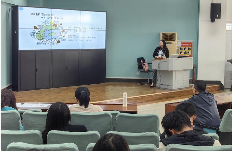 紧接着,周老师向老师们分享了大学生常见心理疾病的症状和早期表现,包括精神分裂症、抑郁症和双向情感障碍等心理问题,提醒班主任老师如果观察到有学生出现了反常的行为,应保持一定的敏感度,及时观察学生的举动并联系心理咨询师进行干预。