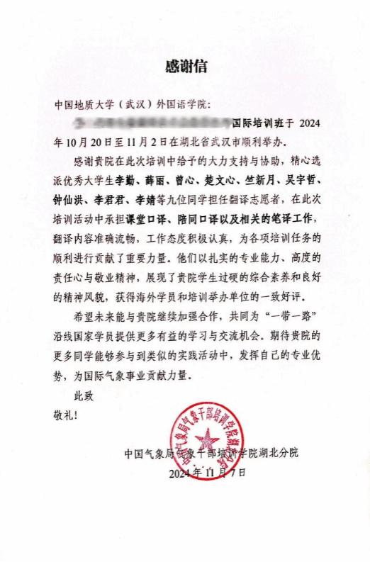 精心选派优秀本研学生李勤、薛丽、曾心、楚文心、竺新月、吴宇哲、钟仙洪、李君君、李婧等九位同学担任翻译志愿者,在此次培训活动中承担课堂口译、陪同口译以及相关的笔译工作,翻译内容准确流畅,工作态度积极认真,为各项培训任务的顺利进行贡献了重要力量。他们以扎实的专业能力、高度的责任心与敬业精神,展现了磁力猫