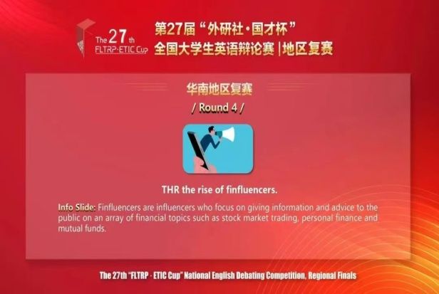 (通讯员:赵妍)4月12—13日,第27届“外研社·国才杯”全国大学生英语辩论赛华南赛区复赛圆满落幕。本届赛事由北京外国语大学等权威机构联合主办,采用英国议会制(BP赛制),吸引了来自全国各地的120余所高校140多支队伍云端激辩。