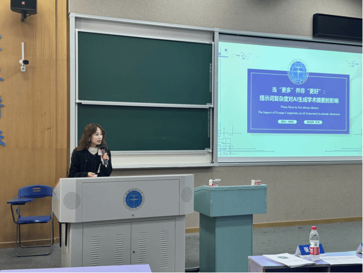 青年研究者的活力与潜力。她给同学们提出了以下三点建议。一是论文题目要突出研究亮点与核心学术关键词,做到简洁醒目;二是研究方法必须科学严谨,小样本先导研究需进一步扩大语料规模,以增强结论的可靠性与说服力;三是论文格式应对照相关学术写作规范,确保引用准确、结构完整、框架统一,全面提升学术规范性与竞争力。她勉励同学们要在反复打磨论文中提高自身的学术素养,争取在校级科报会答辩中实现新的突破。