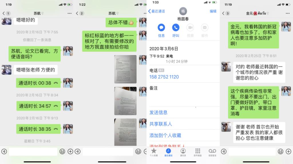 在张伶俐老师今年的三个毕业生中,有韩国留学生金元,一位翻译硕士和一位学术硕士。自寒假以来,师生一直保持紧密联系。金元同学申请了攻读武汉某高校的语言学博士,张老师为他撰写推荐信,并指导他认真写好硕士论文,为将来的博士研究打下坚实的基础。他因母亲生病寒假回国,在看到武汉疫情的报道后很担心,经常在微信上问候导师及同窗。张老师也密切关注他及家人的安危,得知他和家人均已离开韩国去了泰国,他也根据导师的修改意见抓紧时间修改论文,感到非常欣慰。目前疫情已经得到有效控制,师生们都期待着重回校园的美好时刻。